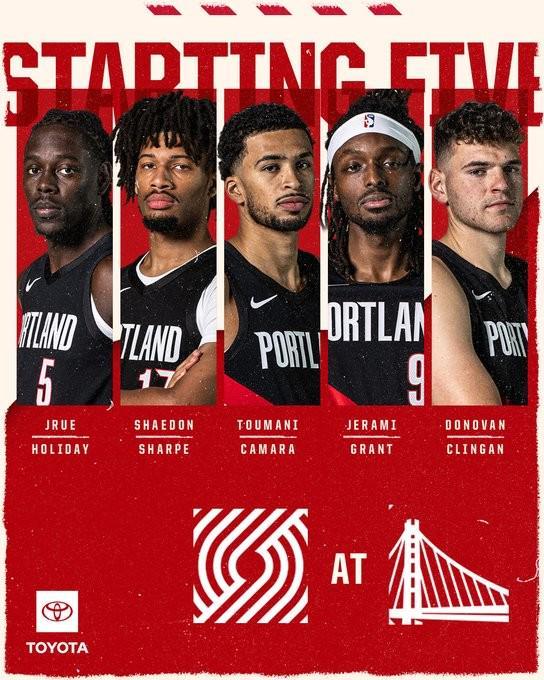 杨瀚森不在列,开拓者季前赛对勇士首发出炉:霍勒迪联手克林根出战