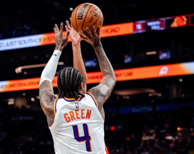 太阳队没有放过这个机会,布克和格林火力全开,尤其是格林,他需要赶紧证明自己的能力,在本场比赛里表现出色。在交易加盟到太阳队的首秀里格林全场比赛出战不到23分钟,20投10中拿下了29分3篮板3助攻2抢断的数据,只出现了2次失误,帮助太阳队在主场以115比102击败了快船队。