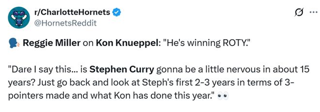 NBA名宿雷吉-米勒也在最新的播客节目上谈到了克努佩尔:“他肯定能当选最佳新秀,再过15年,库里会不会有点紧张?”