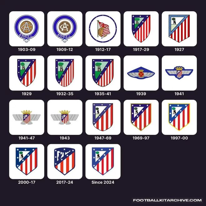 这种气质也深深刻在了包括球衣和队名的一切球队历史中。马竞的队徽上没有皇冠,队名上没有御赐的“皇家”,甚至连“竞技”这二字都做过调整:弗朗哥时期,有一道关于禁止球队使用外来词作为名字的禁令,因此马竞从和毕尔巴鄂一样的Athletic变成了Atlético。